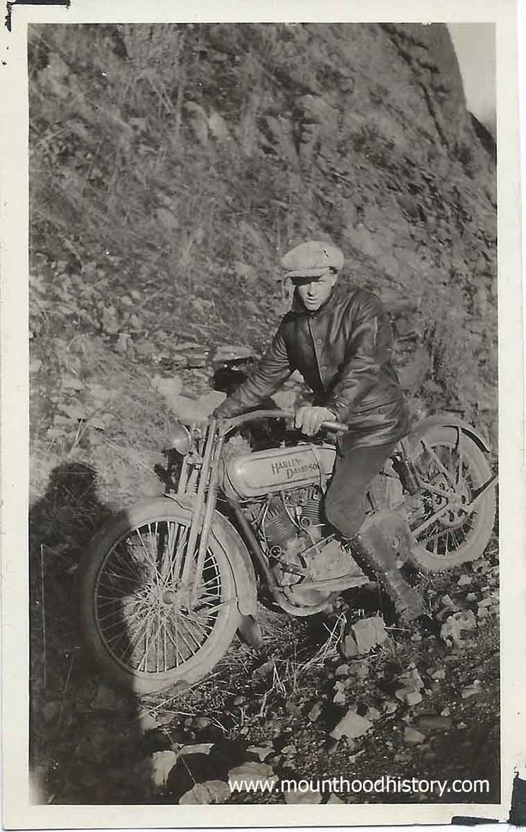 Here’s a series of photos from 1927, ten years after the opening of the Historic Highway, showing a young man and his Harley Davidson motorcycle. It must have been in the Winter as there seems to be snow and rock fall in the photos.