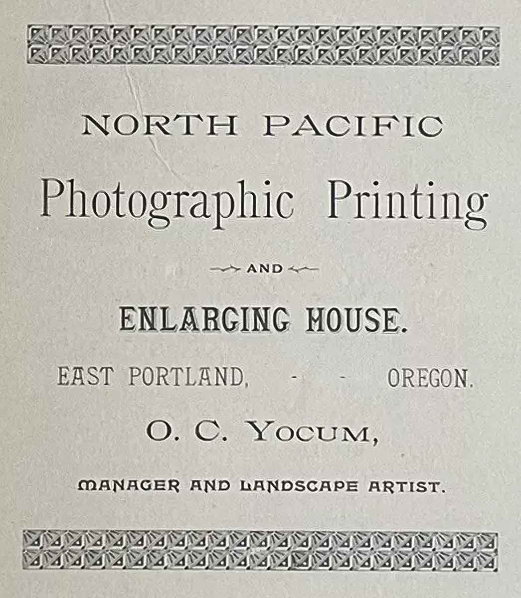 In 1881, they moved to Portland, where OC entered the photography business. At the time, photography was a complicated and messy process. Photographers used wet plate photography, which required them to prepare a glass plate with chemicals, expose it, and develop the image within 15 minutes. This process required a portable darkroom, usually in the form of a tent.